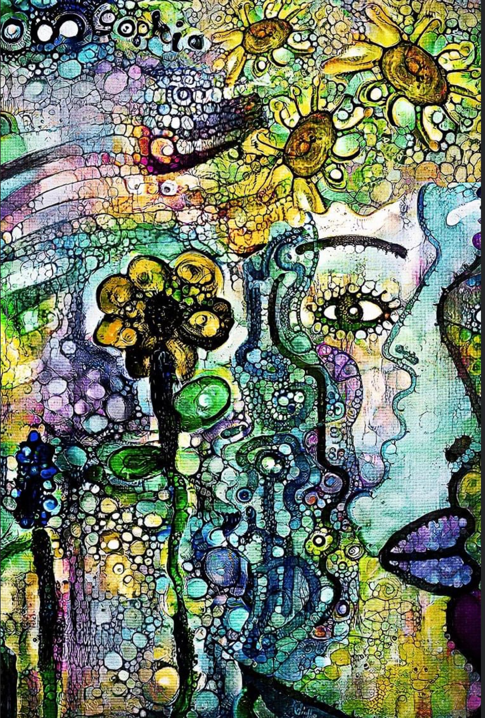 "Flowers In Her Hair” by American Digital Artist Cathy Labudak. Labudak attributes this work to her grand daughter's drawings of flowers and the sun. She has been creating art for over 15 years and is obsessed with the ability it gives her to create. We celebrate her creativity and are honored to have her work here in The Art For Charity Gallery. This digital print on canvas is 18" x 24". The minimum donation is $200.00