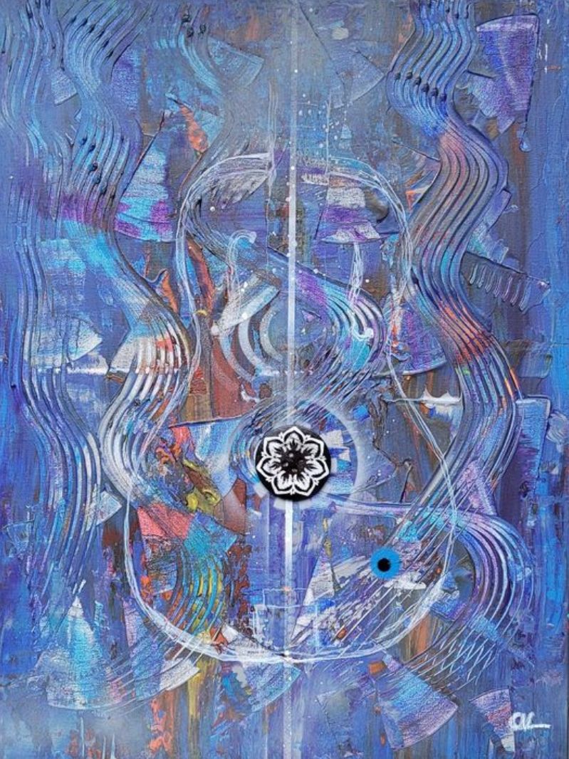 Rhythm and Blues is the creation of Cvl Art. The artist, writer and film maker Chris Van Loan, Sr. who makes Austin, Texas his home. This US Army veteran is inspired by art and paints hoping it will inspire others especially veterans like himself. Van Loan uses acrylic and spray paint on canvas to make his creations. We celebrate his creativity and are honored to have his work here in The Art For Charity Gallery. This painting is 24x18 stretched and is not for sale.