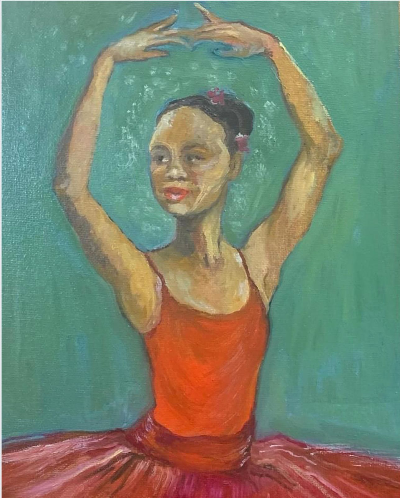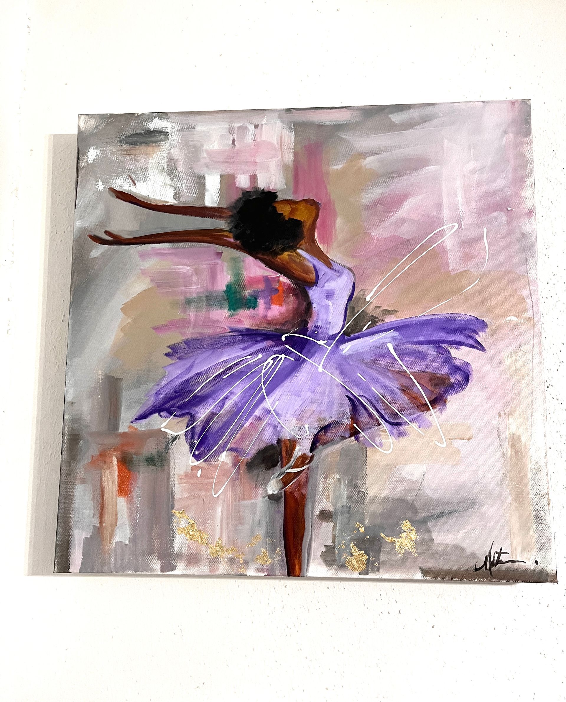 "Purple Ballerina" by Theresa Cates an American artist who uses her art as a means of therapy. Without formal training Cates learned to use her pieces to convey what's inside of her, something beautiful. Cates also has the ministry, "Art In Motion" where she creates paintings while performances of the spoken word, dance, and or mime are live on stage. We are pleased and grateful to have her work here at The Art For Charity Gallery. This painting is Oil on Canvas 20"x20" stretched and ready to frame. The minimum donation is $900.00.