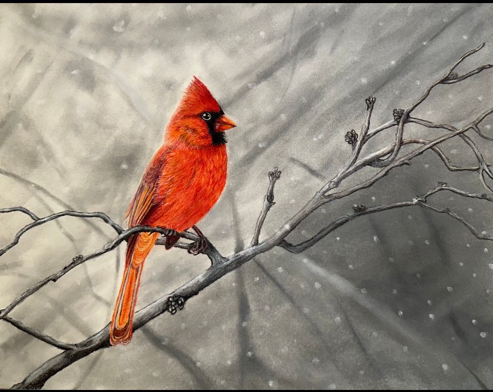 "Male Cardinal" is the creation of Judy Norred. Norred says she found her heart with art while traveling and the memories help her create. We are honored to have her work here in the Art For Charity Gallery. "Male Cardinal" is an 11"x 14" original colored pencil drawing on sanded paper framed. The minimum donation is $400.