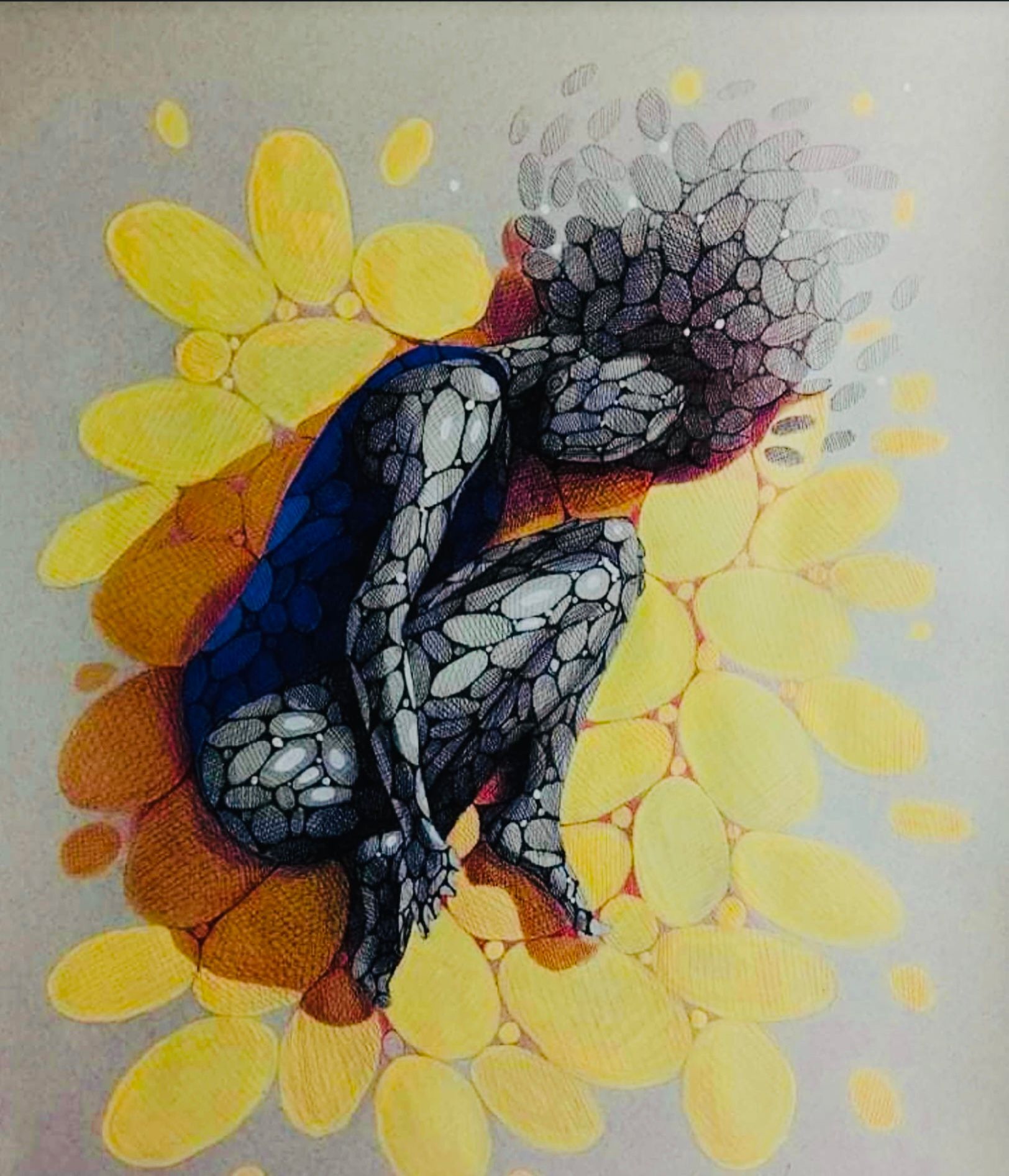 "RESTING", is the creation of Damola Adeyemo from Ibadan, Nigeria. It is Mixed Media Pen on Paper and was created with the passage by Master Oogway in mind, that says, "Your mind is like water, my friend, when it is agitated it becomes difficult to see. But if you allow it to settle, the answers become clear. Resting is 14"X 18" framed. The minimum donation is 600.00