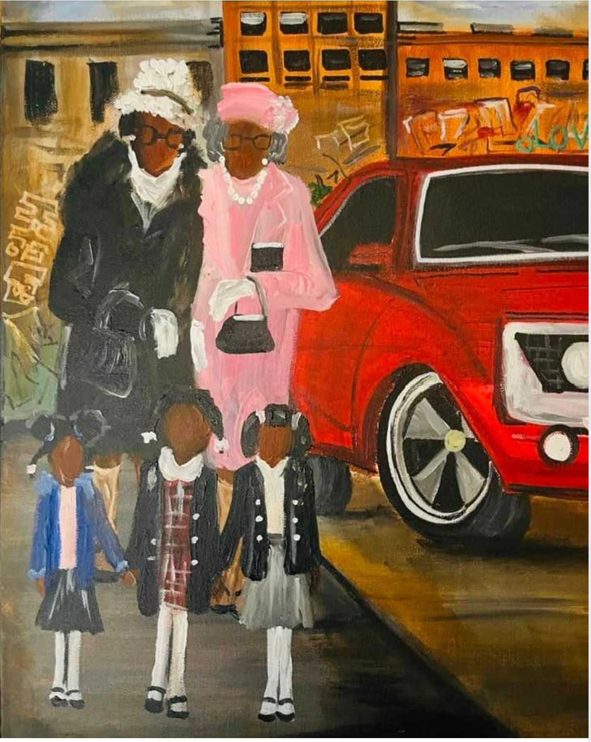 "SUNDAY" by Theresa Cates an American artist who uses her art as a means of therapy. Without formal training Cates learned to use her pieces to convey what's inside of her, something beautiful. Cates also has the ministry, "Art In Motion" where she creates paintings while performances of the spoken word, dance, and or mime are done on stage. We are pleased and grateful to have her works here at The Art For Charity Gallery. This painting is Oil on Canvas 16"x20" and is $400