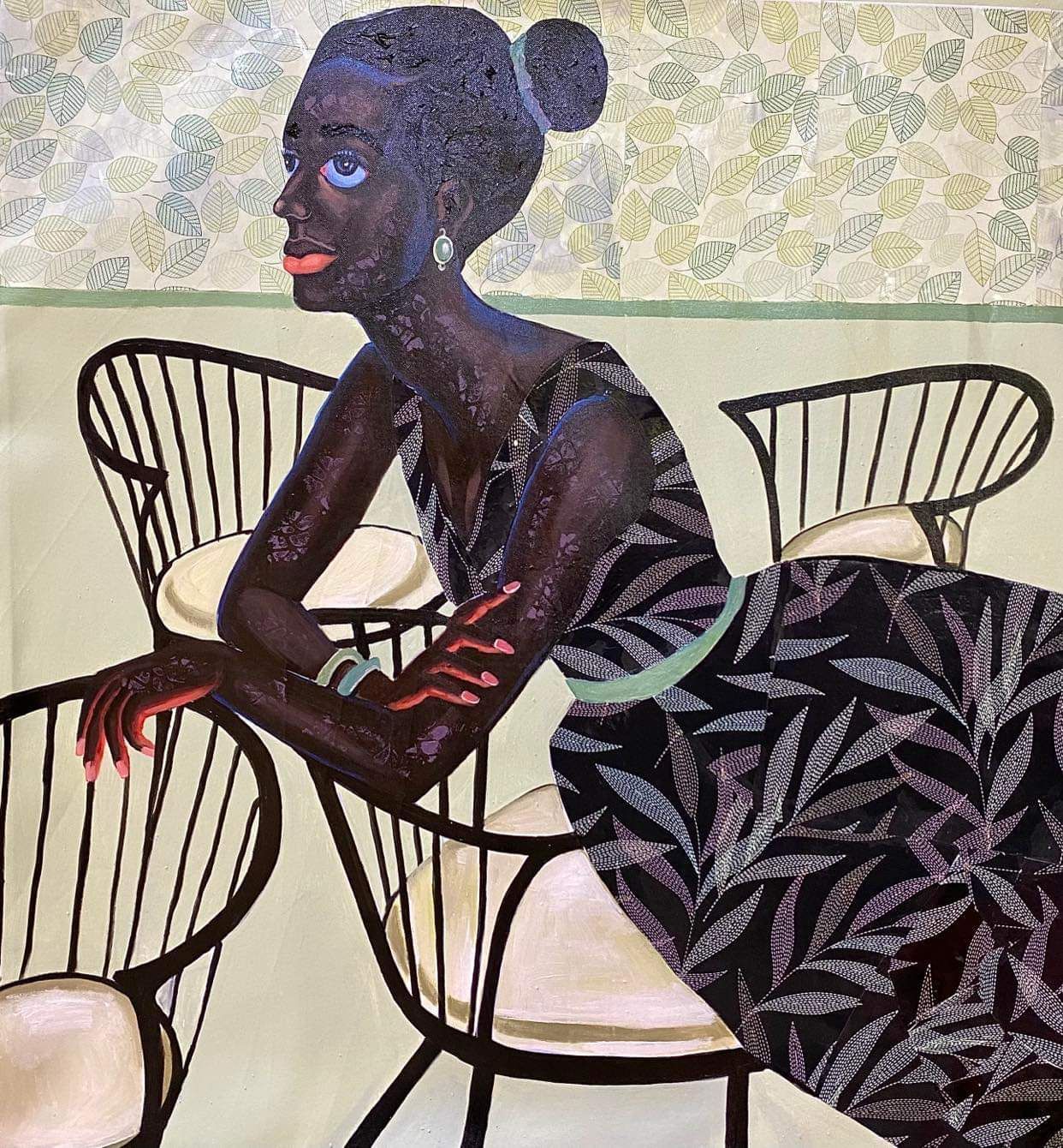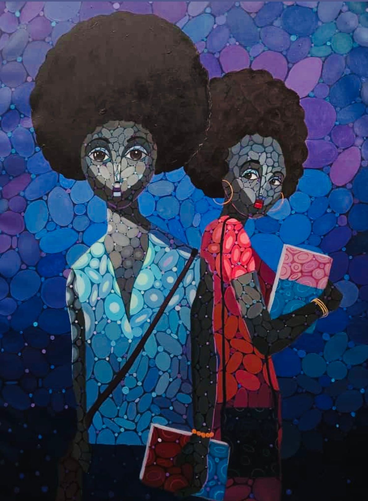 "LOOKING", is the creation of Damola Adeyemo from Ibadan, Nigeria. It is Acrylic on Canvas and celebrates the Afro giving homage to the black women of the 1970's civil rights movement and their commitment to embrace their blackness with their hair. It is 36"X48" stretched and ready to frame.