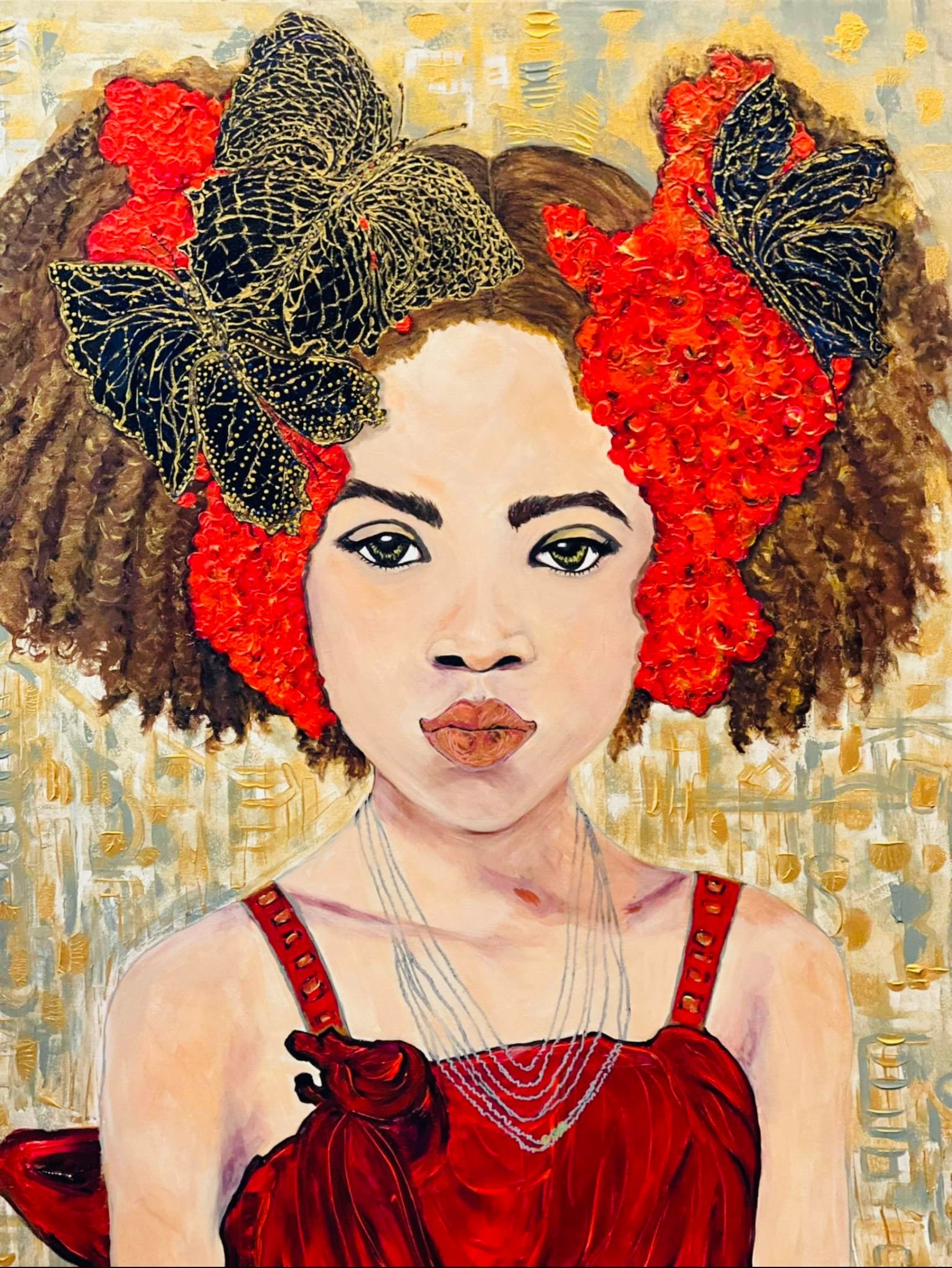 Jasimine" is an acrylic on mixed media canvas by artist John E. Wright. Wright began painting as a youth and as he continued to paint into his high school years he says painting became his catalyst to attract and meet new friends. The oldest of nine children Wright hails from West Philadelphia, Pennsylvania . We celebrate his work and are happy to have it here in The Art For Charity Gallery. This painting is 9"x 12" framed. The minimum donation is $400.00.